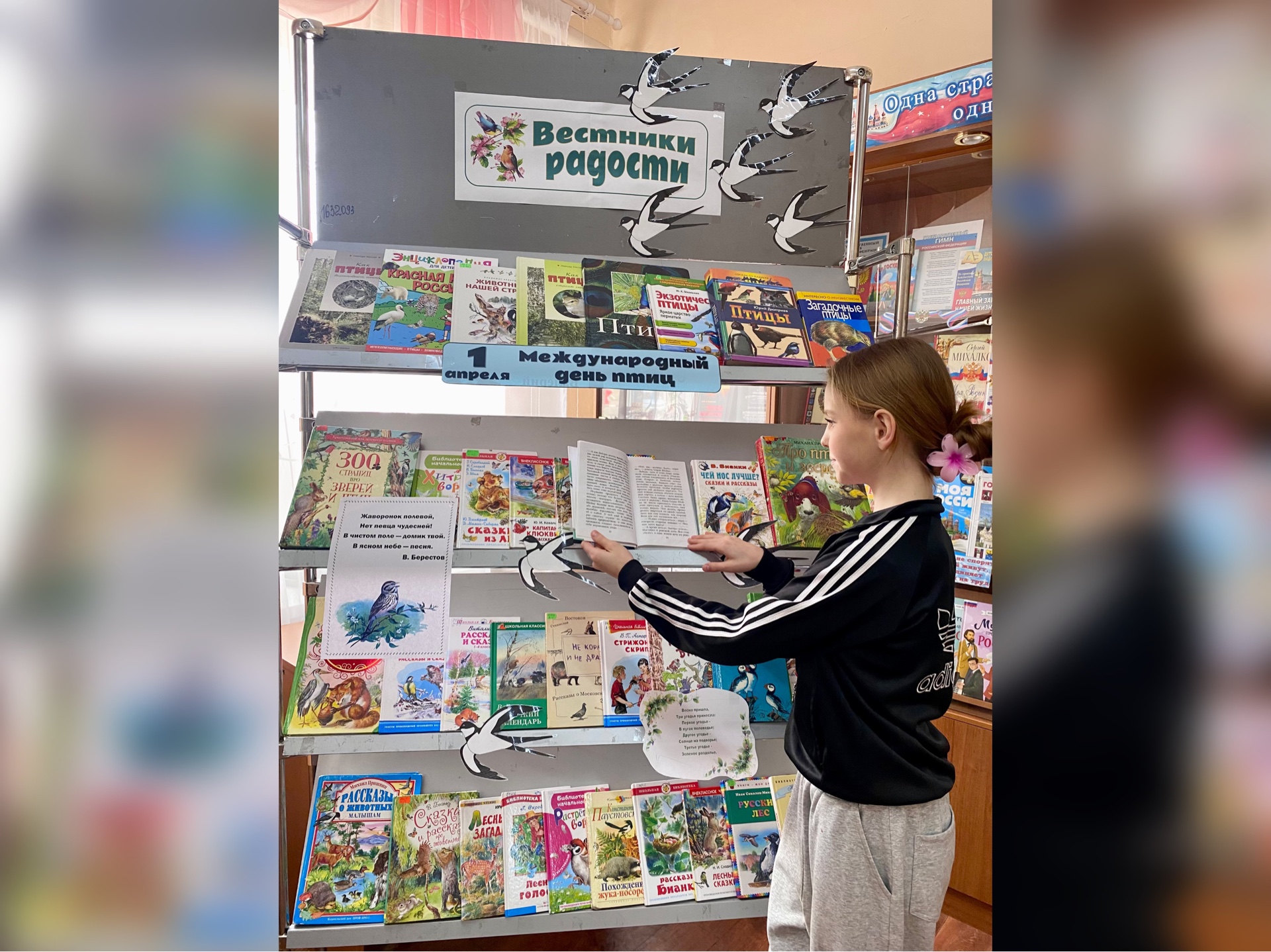 К этой дате в детской библиотеке оформлена книжная выставка «Вестники радости». На ней представлена литература, раскрывающая многообразие птичьего царства: от крошечных колибри до величественных орлов. Вы ... Читать дальше » |